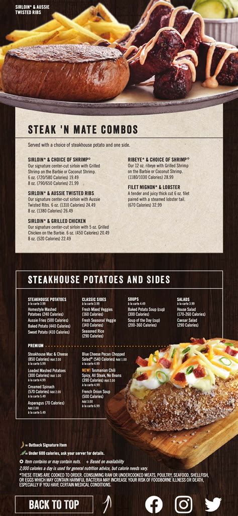 Outback Steak Menu. View reviews, menu, contact, location, and more for outback steakhouse restaurant. Web the home of juicy steaks, spirited drinks and aussie hospitality.